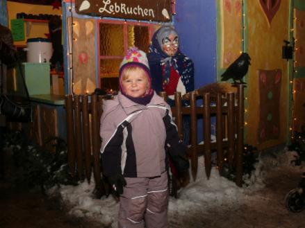 Hey, rechts ist die Hexe, nicht links! Da waren wir doch in Hindelang auf dem Christkindles-Markt. Das ware alles toll beleuchtet. Bei einigen Gästen ist das Trinken verbrannt! Papa sagt "Feuerzangenbowle" dazu...